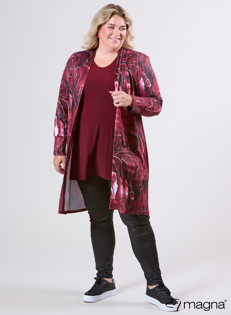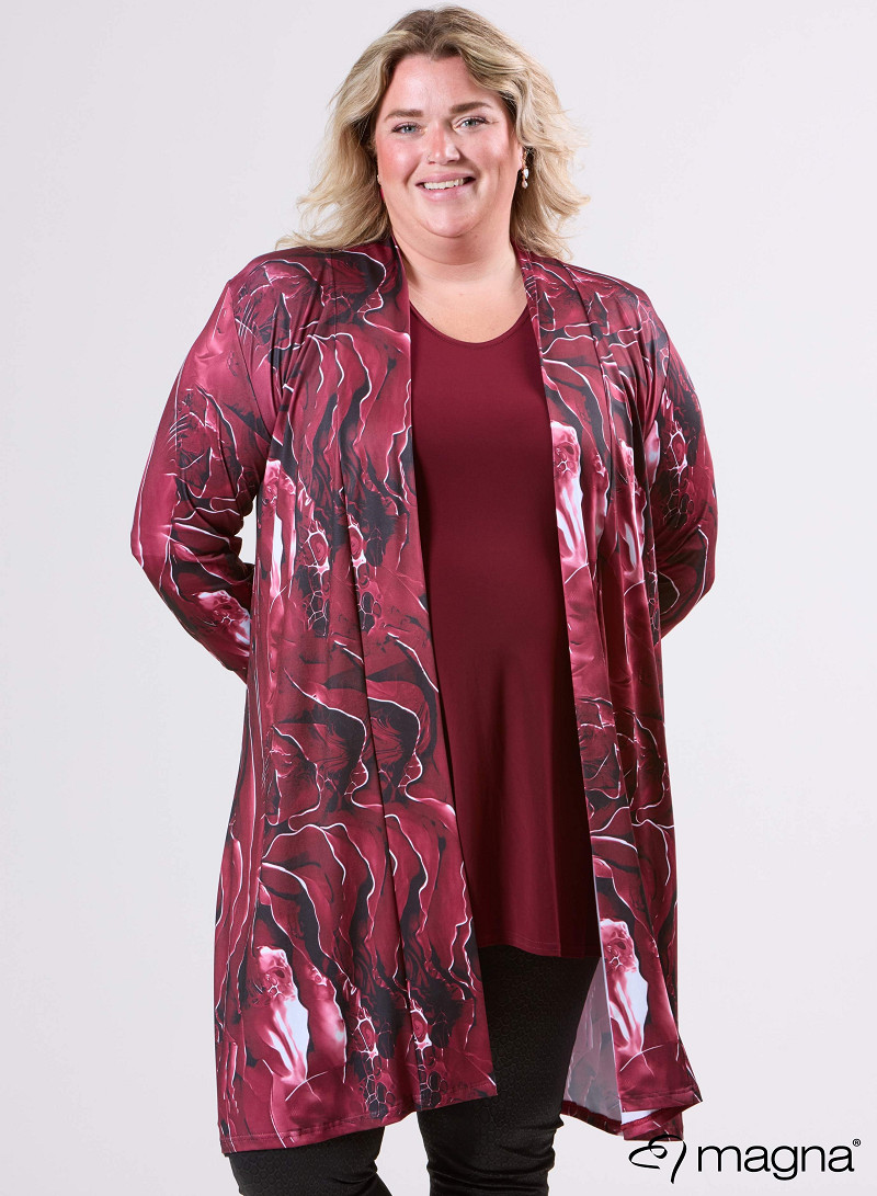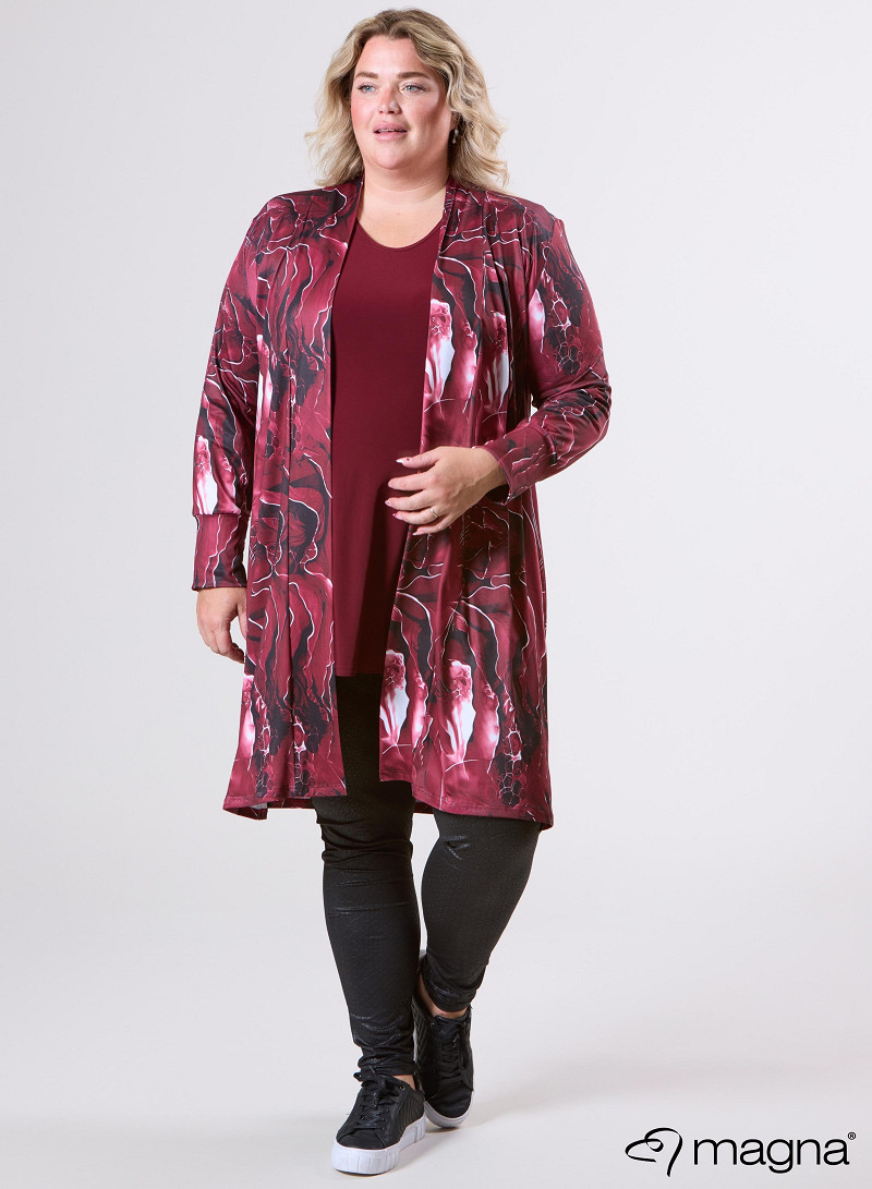 Open Front Loose Cardigan (N-2201-PRINT) T70032-Pebble Waves Wine Red