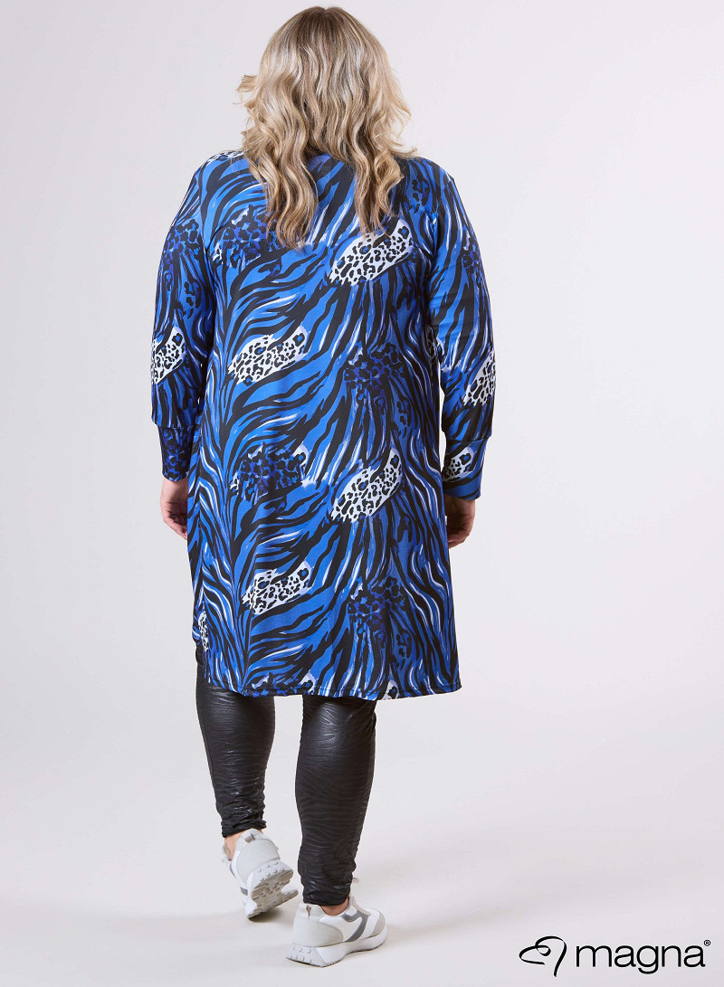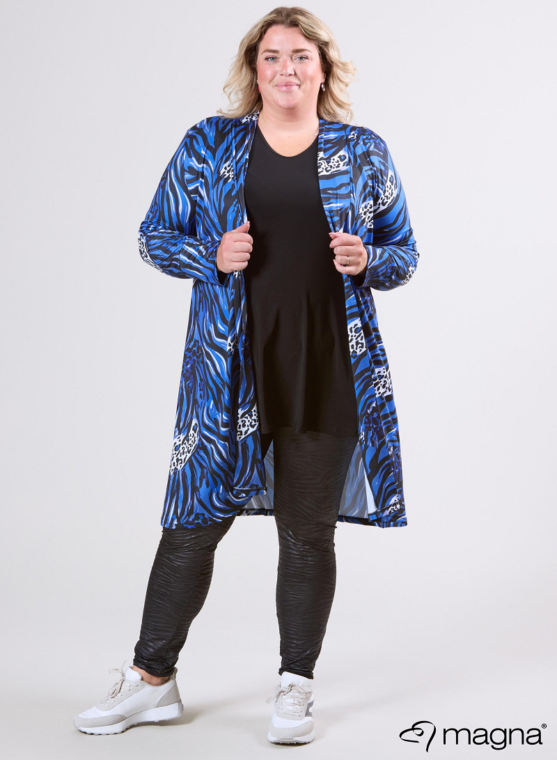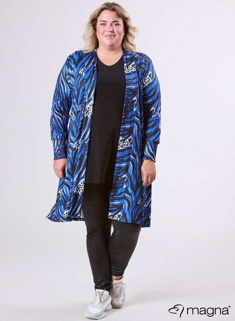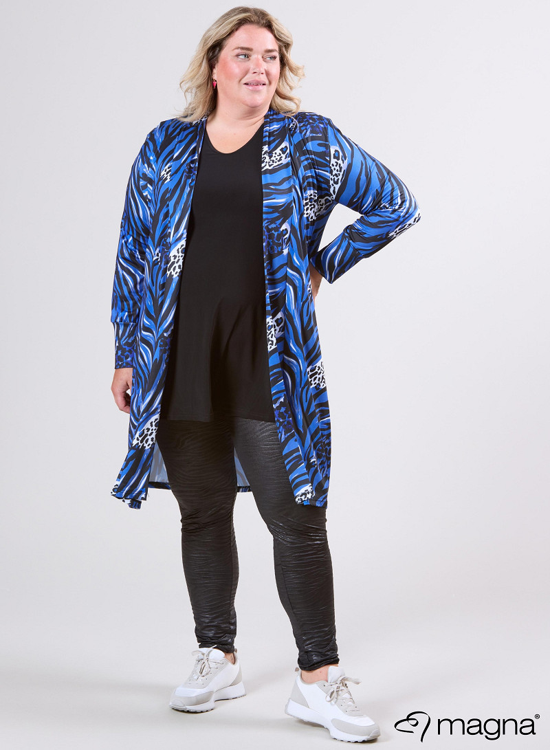 Open Front Loose Cardigan (N-2201-PRINT) T71060-Animal Waves Blue