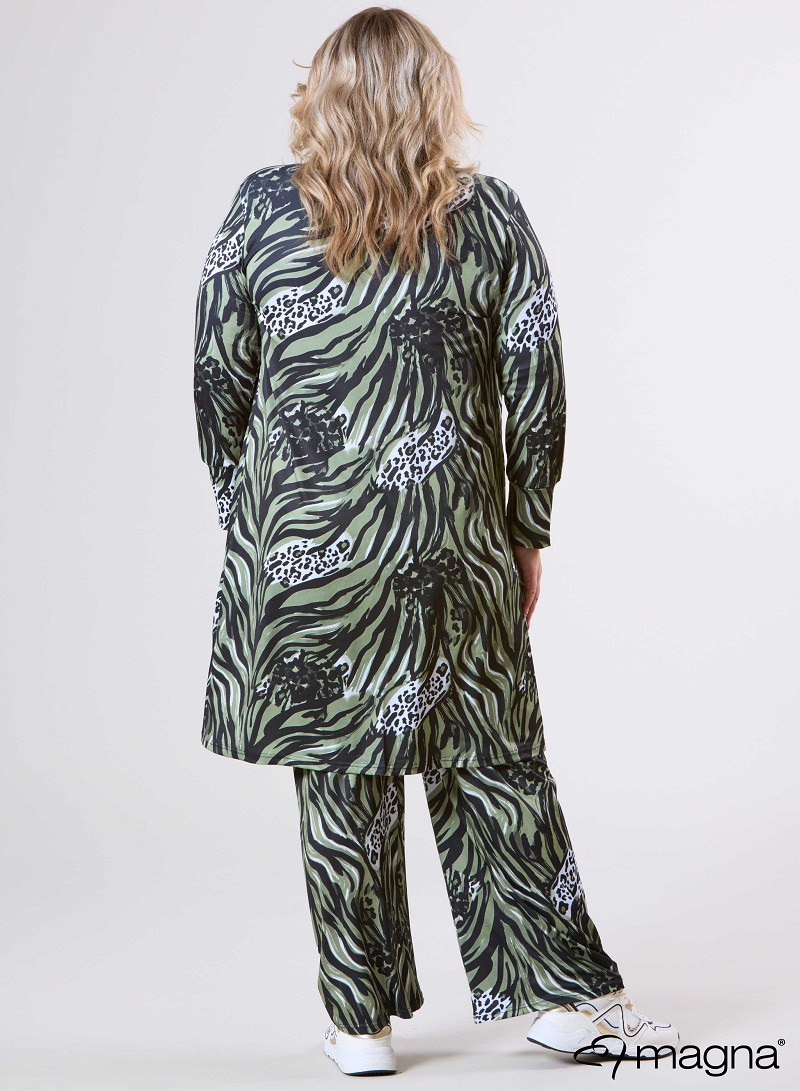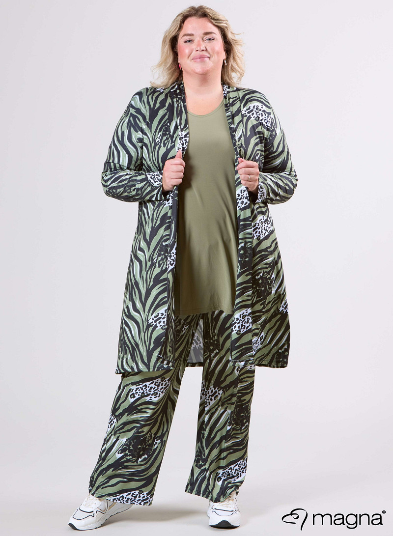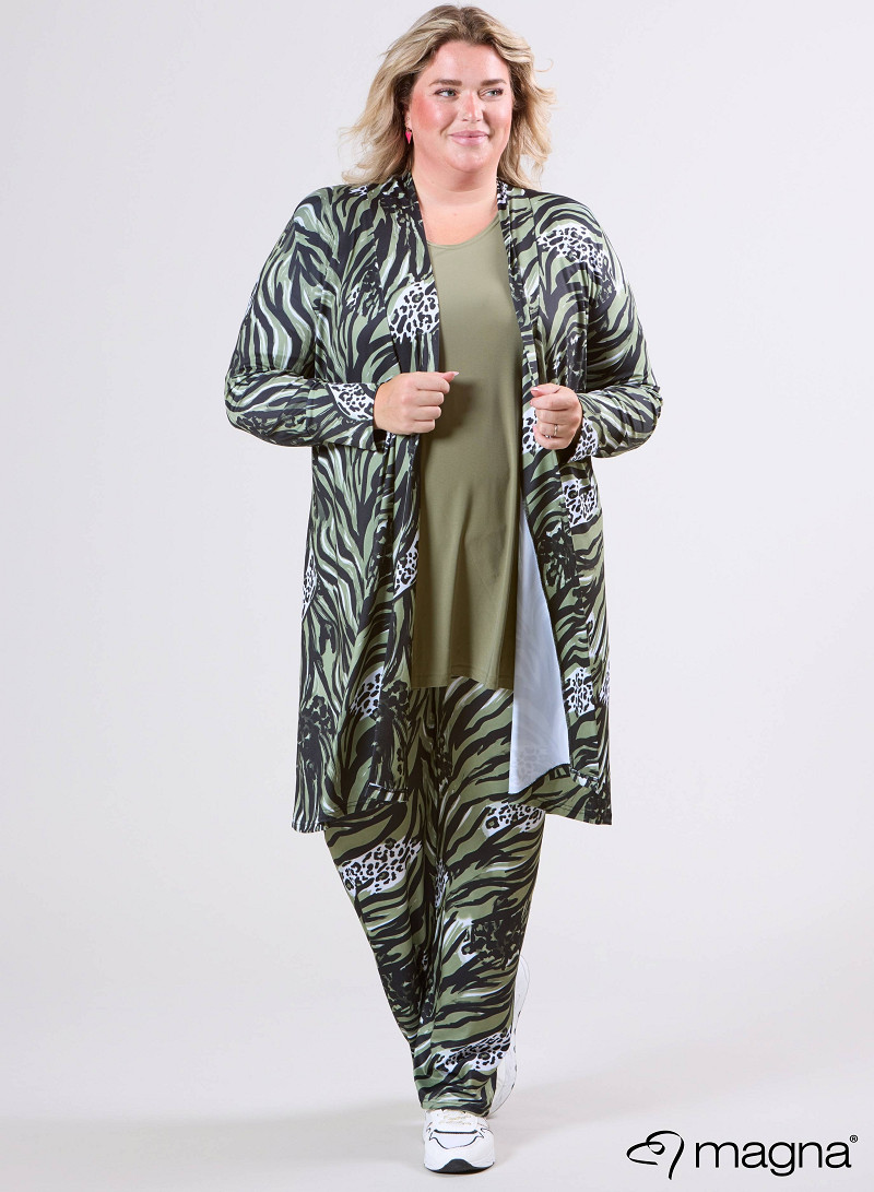 Open Front Loose Cardigan (N-2201-PRINT) T71080-Animal Waves Sage Green