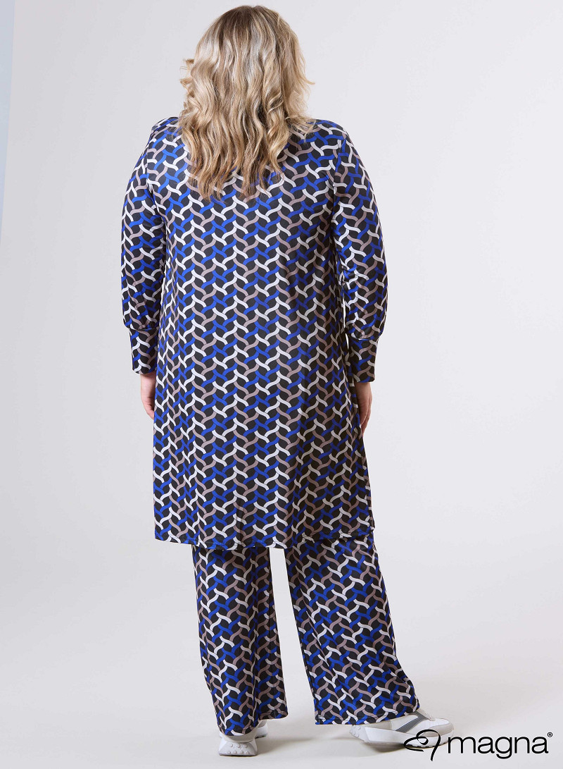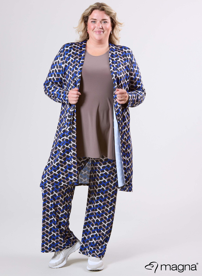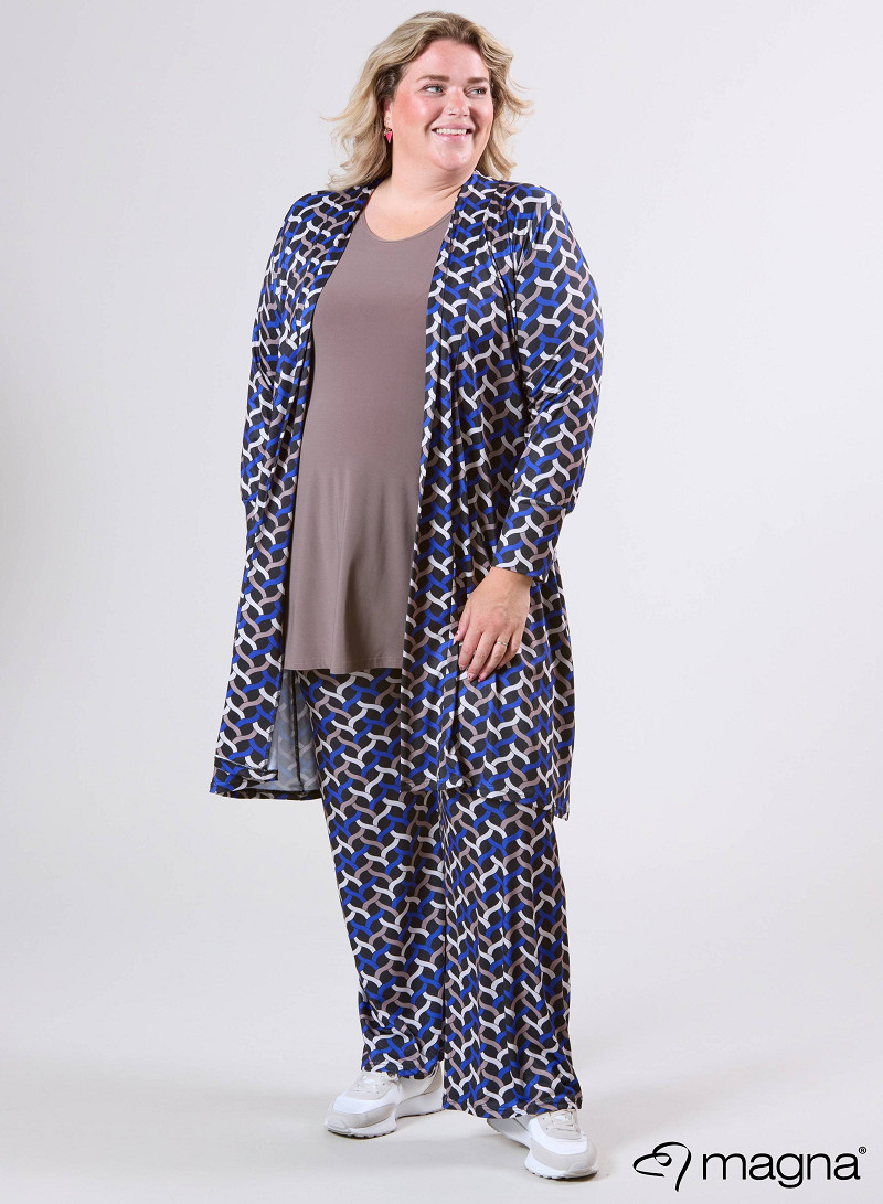 Open Front Loose Cardigan (N-2201-PRINT) T72060-Woven Royal Blue-Sand