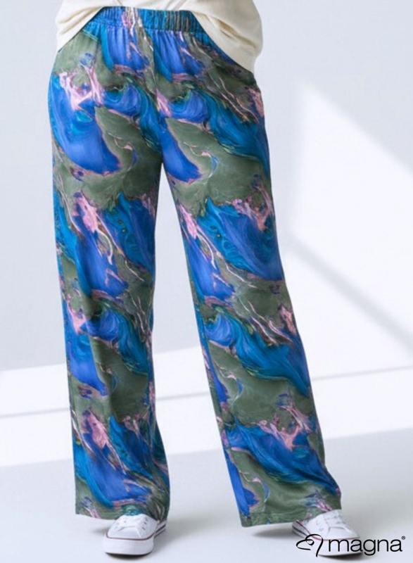 Broek Basic (D-03-PRINT) T34071-Swirl Green-Blue