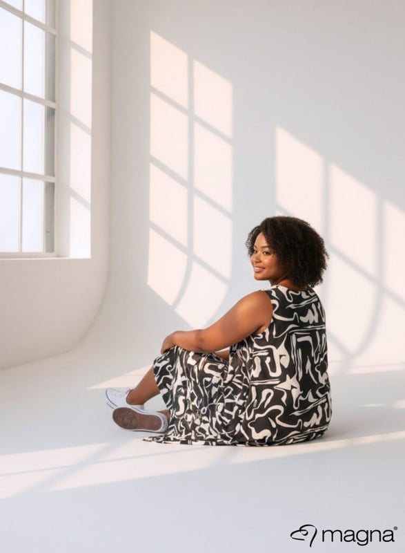 A-Shaped Sleeveless Split Dress (C-2323-PRINT) T31001-Freestyle BW