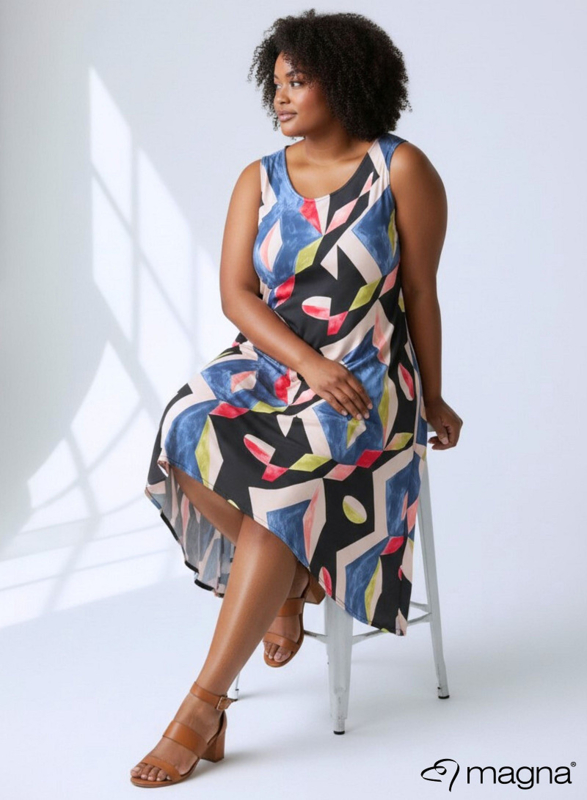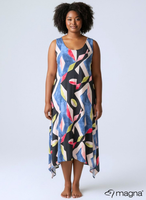 A-Shaped Sleeveless Split Dress (C-2323-PRINT) T32008-Mixed Shapes Sky Blue-Lime