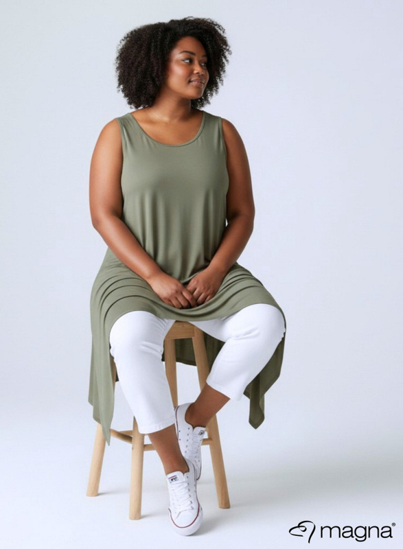 A-Line Jurk/Tuniek zonder mouwen en punten aan de onderkant.