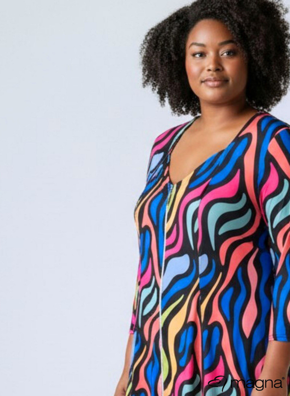 A-Line Shaped Zipper Tunic (C-2606-PRINT) T30060-Bold Lines Waves Blue-Pink