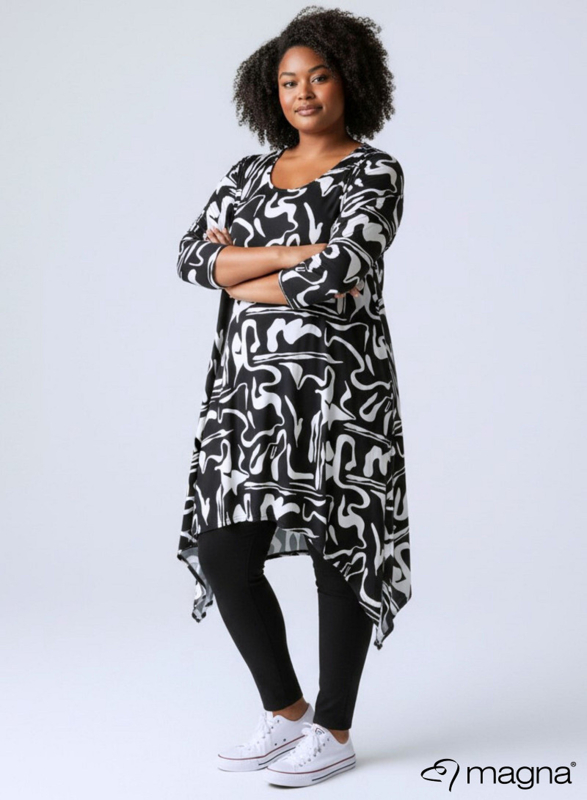 Leather Look Tuniek Punten 3Q-mouw(C-0001-PRINT) T31001-Freestyle BW