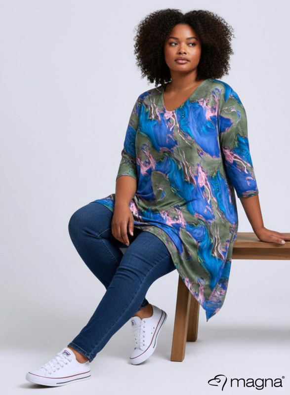 Leather Look Tuniek Punten 3Q-mouw(C-0001-PRINT) T34071-Swirl Green-Blue
