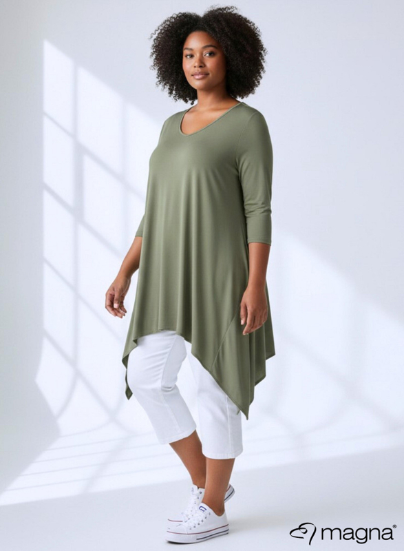 Klassieke A-lijn tuniek met punten aan de zijkanten.