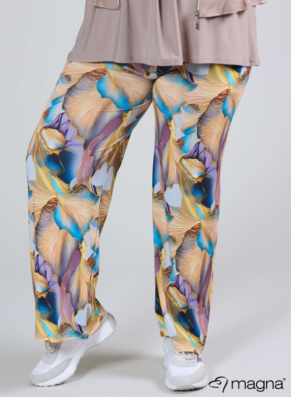 Broek Basic (D-03-PRINT) T66060-Multicolor Flower BlueMooi vallende basis broek met wijde pijpen. Deze comfortabele en elegante broek is een must have voor elke garderobe. Makkelijk te dragen en te combineren met de rest van de collectie.